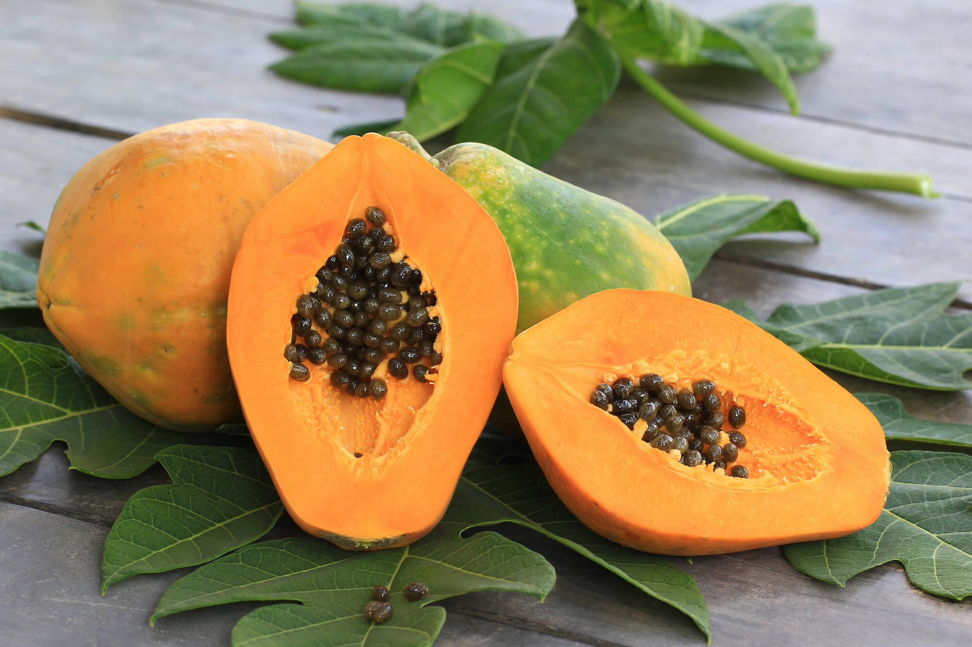 Čerstvou organickou papáju je v Česku trochu těžší sehnat, ale pokud se chystáte na dovolenou do teplých krajin, pak je konzumace papáji dobrou volbou. Toto ovoce je obzvlášť bohaté na antioxidanty a vitamíny a minerály, které pomáhají zlepšit pružnost pleti a omezit výskyt tmavých kruhů pod očima a vrásek. Papája je bohatá na tyto látky: vitamíny A, C, K a E, vápník, draslík, hořčík, fosfor a vitamíny skupiny B. Obsahuje také enzym papain, který je považován za jeden z nejlepších protizánětlivých činitelů a díky tomu brzdí proces stárnutí (studie). Proto se papája vyskytuje také v mnoha kosmetických přípravcích.