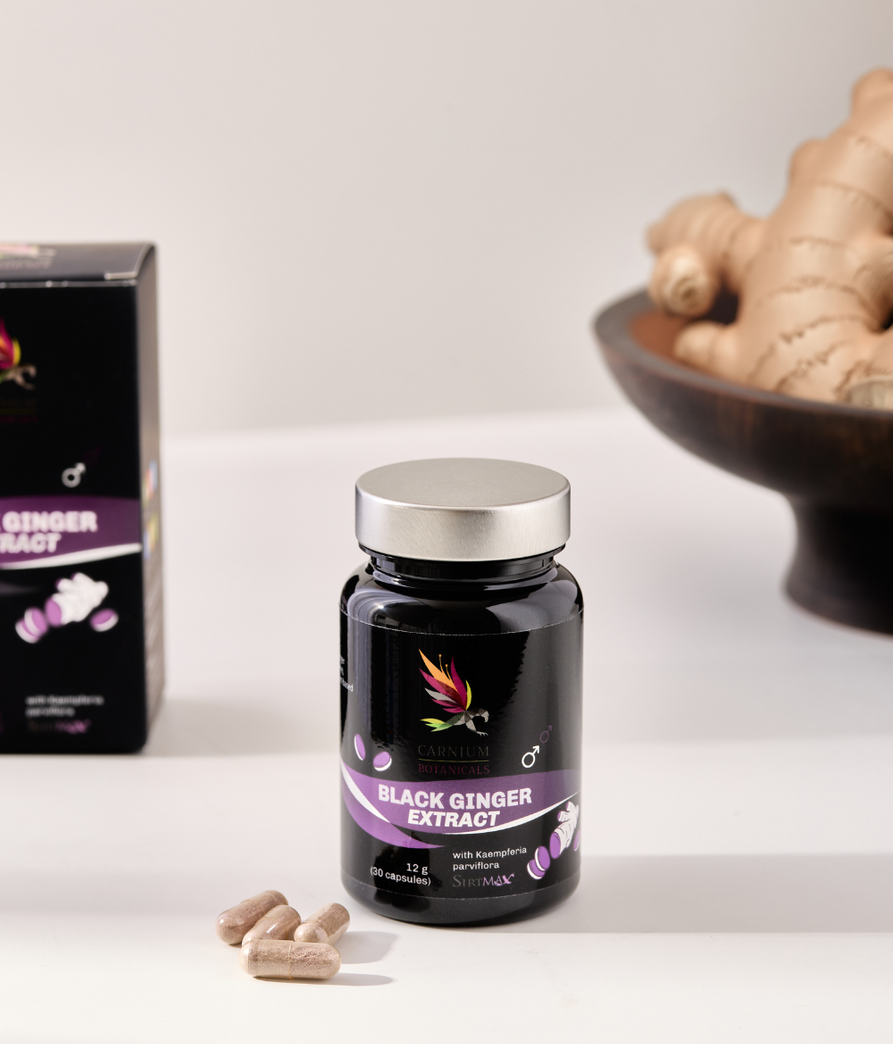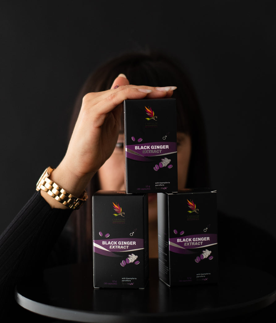 Black Ginger je doplněk stravy obsahující vysoce kvalitní výtažek z černého zázvoru s 5,7-dimethoxyflavony. Jeho složení podporuje zdraví krevního oběhu, snižuje oxidační stres a podporuje fyzickou vytrvalost. Je určen pro všechny, kteří chtějí zlepšit regeneraci, vitalitu a energii.