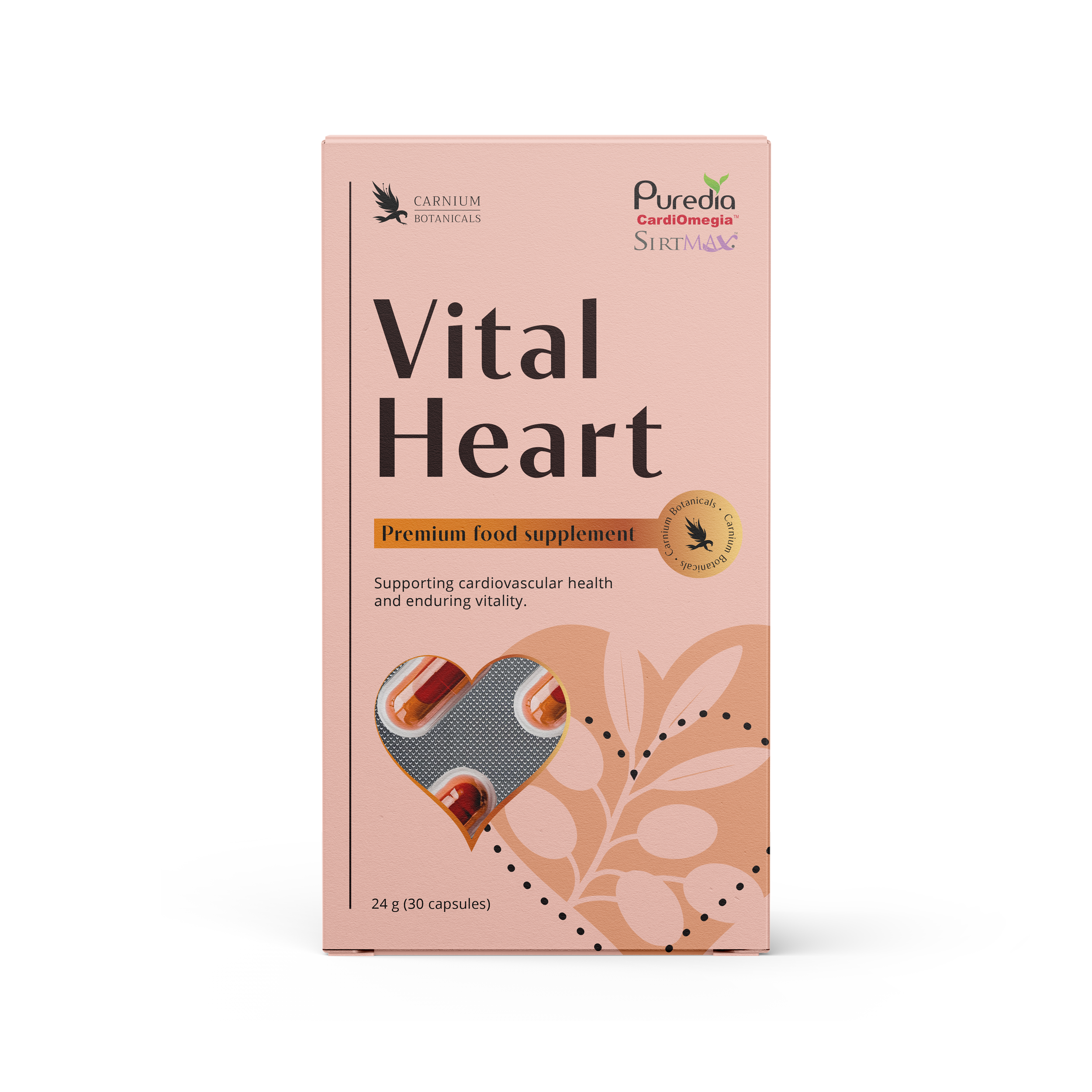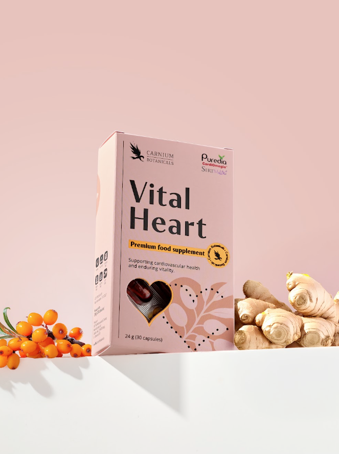 Vital Heart obsahuje také olej z rakytníku CardiOmega™ – přírodní zdroj omega-7, koenzym Q10 a patentovaný výtažek z černého zázvoru Sirtmax®. Tyto receptury dále doplňují rostlinné výtažky.