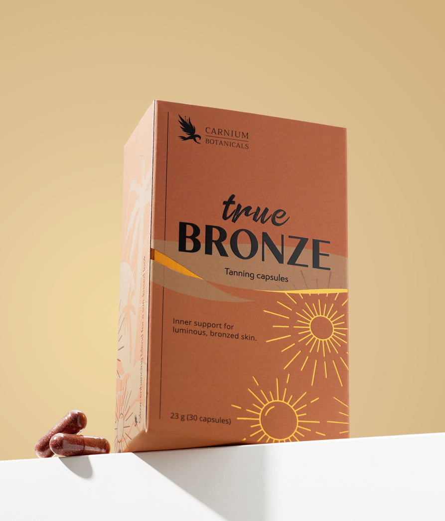 Krásná pleť. Přirozeně. Bez kompromisů. Chcete mít zářivou pokožku bez zdlouhavého opalování a bez použití samoopalovacích krémů? Seznamte se s True Bronze – doplňkem stravy, který je ideální pro všechny, kdo věří v přirozenou krásu, zdravou pleť a bezstarostné dny na slunci.